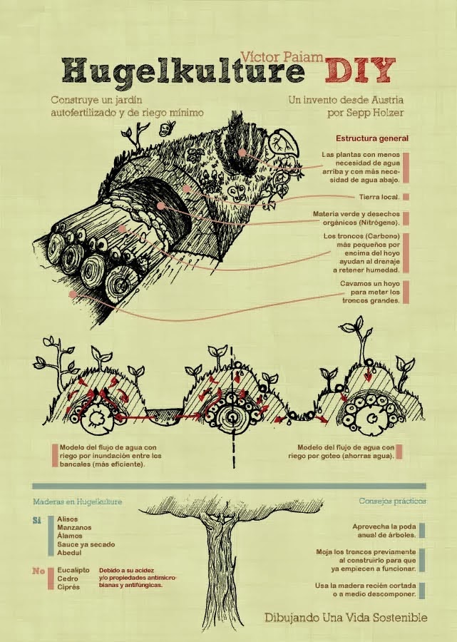 Alrededor del estanque implementamos varios bancales con hügelkultur